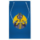 Utformning med illustration av huvudet på en söt liten lila drake på blå bakgrund, söt fantasi/sagor design för barn av Maxi Harmony.