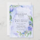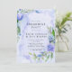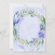 Utformningen har en utskriven färgad med blommigt inslag i skuggor av lila och dammblått över grönt löv gren krans och blommor av peony tulip hyacinths på ljusblå vattenfärgsbakgrund. Underbar för bröllop firande!