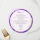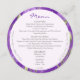 Menykort för bröllop med elegant bouquet från lila, blommor och ljust grönt löv, pastel färgad vår eller sommarmjukhet, romantisk blommigt som ro blommor. Botanisk digital vattenfärgsmålning. Menykort för blommigt blommar botany Bröllop. Lila ECustoms Collection.