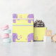 En söt design med lila elefanter med hjärtan på dem. Mjuk färgad rand på gultens bakgrund.
