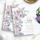 Lås upp charmen av elegans med våra fantastiska inbjudningar till Lila Elegant Baby Shower. Handmålad i lila- och blåsskuggor som återspeglar den unika ambitionen hos din rustiska, utomhusliga eller klassiska babydusch. En passande bukett är på baksidan.