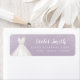 Vattenfärg vit klänning med vit glitter på mjuk lila bakgrund, modern och elegant.