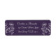 Modern, enkel, minimalistisk, elegant, blommigt, lila, Bröllop Returetiketter. Vit kalligrafi. Du kan anpassa dig med namn och adress.