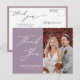 Lila Elegant Skript Modern Minimalistisk Bröllopsfotots Tack-Kort. Uttryck din tacksamhet till vänner och familj som gjorde ditt bröllop extra speciellt med detta vackra tack-kort för bröllopsfoto. All text är förarrangerad för att du enkelt och snabbt ska kunna anpassa den med dina egna ord.