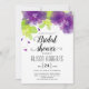 Bouquet med lila eterblommor och kursivt skript med handskrivet kalligrafi blommigt vår bröllop inbjudningskort för möhippan. Överdelen är täckt med en vacker bukett av violett lila blommor med grönt löv.