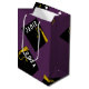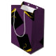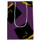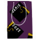 Kreativ påse för examenspresent med klassiska svarta och gyllene examensmössor på lila bakgrund. Redigera texten för att lägga till hans eller hennes namn och examenståret.