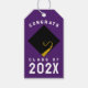 Kreativa presentkort för examen med gratulationsdesign för examen, med svart mössa och gul tofs på lila bakgrund. Redigera texten för att lägga till år.