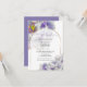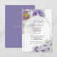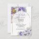 Detaljer vigselkort - Modern text passar bra inuti denna vackra genomskinliga vita guldkantrade valvram som visar de underliggande fantastiska Lila Exotiska blommor med guldkanter - originalkonst © av WhimsicalArtwork™.