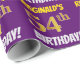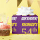 Denna design för presentpapper har ett meddelande som "REGINALD'S 54-ÅRSDAG!", med "54" i en falskt/gimiterat guldliknande färg, och med namnet och "ÅRSDAGEN" i ett roligt, fet stil. Namnet kan anpassas, och bakgrunden är lila. Presentpapper som detta kan kanske användas när man förpackar födelsedagspresenter som ges till någon för att fira deras femtiofjärde födelsedag. [~Z0000206]