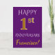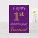 Denna enkla, personliga bröllopsjubileumskortdesign har meddelandet "LYCKLIGT 1:a BRÖLLOPSJUBILEUM", där "1:a" har ett falskt guldliknande utseende. Framsidan har också ett anpassat namn och en lila bakgrund. Insidan har ett personligt bröllopsjubileum-meddelande. Det kan ges till en make eller maka för att fira parets första bröllopsjubileum. [~Z0000089]