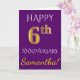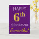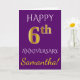 Denna enkla, personliga gratulationskortdesign för bröllopsjubileum har meddelandet "LYCKLIGT 6-ÅRSJUBILEUM", där "6:e" har ett utseende som liknar falskt guld. Framsidan har också ett personligt namn och en lila bakgrund. Insidan har ett anpassat jubileumsmeddelande. Det kan ges till en make eller maka för att fira parets sjätte bröllopsjubileum. [~Z0000089]