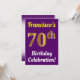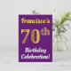 Denna födelsedagsfestinladningsdesign har ett meddelande som "Francisco's 70-årsfirande!", där namnet kan anpassas, och där siffran "70" har ett utseende som liknar guld. Den har också en lila bakgrundsfärg. Evenemangsinformationen på baksidan kan anpassas. Den kan användas för att inbjuda människor till någon sjuttioårsfirande eller födelsedagsfest.