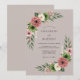 Denna botaniska design har en dämpad lila bakgrund prydd med frodiga blomsterarrangemang. Romantiska dammiga rosor och krämiga vita anemoneparasoller paras med jordiga gröna suckulenter och ömtåliga kvistar av eukalyptus. Paletten skapar en fängslande och vintage stämning, perfekt för ett elegant vår- eller sommarfirande. Kompositionen är balanserad med mjuka akvarellstrukturer och rika botaniska detaljer.