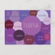 Lila färg cirklar geometrisk utformning med många skuggor av lila. Namn i färg är i en roligt med dekorativt typsnitt: blå violett, ametyst, druva, periwinkle, mauve, orchid, plum, äggplanta, lavender, violett och mycket annat.
