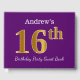 Lila, Faux Guld 16:e Födelsedagsfesten; Anpassat n Gästböcker
