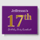 Gästsymbolen bok har ordnumret "17:e" med ett faux guld-liknande utseende. Den har också en personlig namn och en lila färgad bakgrund. Den skulle kunna användas i party för någon som firar sin sjuttonårsdag. [~Z0000057]