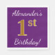 Den här enkla pappra napkin-designen innehåller ett meddelande som "Alexander's 1st Birthday!", där "1st" har ett faux-guld-liknande utseende på lilans färgad. Namn kan vara personlig. Den skulle kunna användas i en födelsedagsfest till någon som firar sin första födelsedag. [~Z0000085]