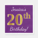 Den här enkla pappra napkin-designen innehåller ett meddelande som "Jessica's 20:e födelsedag!", där "20:e" har ett faux guld-liknande utseende på lilans färgad. Namn kan anpassas. Den skulle kunna användas i en födelsedagsfest till någon som firar sin tjugonde födelsedag. [~Z0000085]