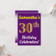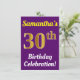 Födelsedagsfest inbjudan har ett budskap som "Samantha's 30års födelsedag Firande!", där namn kan vara personlig och där siffran "30:e" har ett faux guld-liknande utseende. Den har också en bakgrund för färgad av lila. Händelseinformationen på baksidan kan anpassas. Den skulle kunna användas för människor i inbjudan till någons trettioårsdag eller födelsedagsfest. [~Z0000121]