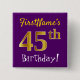 Lila, faux Guld 45:e födelsedagen, med eget namn Knapp