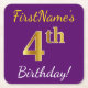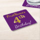 Lila, Faux Guld 4e födelsedagen + eget namn Underlägg Papper Kvadrat