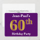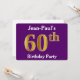 Den här inbjudan har ordningstalet "60:e" med ett faux guld-liknande utseende. Den har också en personlig namn och en lila färgad bakgrund. Händelseinformationen på baksidan kan anpassas. Det skulle kunna användas för människor i inbjudan till någons sextionde födelsedagsfest. [~Z0000014]