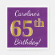 Lila, Faux Guld 65e Birthday + Anpassat namn Pappersservett