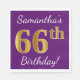 Den här enkla pappra napkin-designen innehåller ett meddelande som "Samantha's 66 Birthday!", med "66:e" utseendet faux guld-like på lila färgad-bakgrunden. Namn kan vara personlig. Den skulle kunna användas i en födelsedagsfest till någon som firar sin sextiosjätte födelsedag. [~Z0000085]