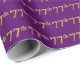 Den här pappra utformningen har ordnumret 77 med ett faux-guld-liknande utseende. Den har också en lila bakgrund. Det skulle kunna användas när man slår in en gåva som ges till någons sjuttiosjunde födelsedag, eller kanske för ett gift pars sjuttiosjunde bröllop-årsdag, eller för något annat 77:e evenemang/tillfälle. [~Z0000025]