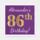 Den här enkla pappra napkin-designen innehåller ett meddelande som "Alexander's 86 Birthday!", där "86:e" har ett faux-guld-liknande utseende på lilans färgad. Namn kan anpassas. Den skulle kunna användas i en födelsedagsfest till någon som firar sin åttiosjätte födelsedag. [~Z0000085]