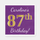 Lila, Faux Guld 87:e födelsedagen + eget namn Pappersservett