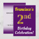 Födelsedagsfest inbjudan har ett budskap som "Francisco's 2nd Birthday Firande!", där namn kan vara personlig och där nummer "2nd" har ett faux guld-liknande utseende. Den har också en bakgrund för färgad av lila. Händelseinformationen på baksidan kan anpassas. Den skulle kunna användas till inbjudan för att fira eller födelsedagsfest på någons andra födelsedag. [~Z0000121]