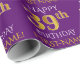 Den här pappra designen innehåller ett meddelande som "LYCKLIG 39:e BIRTHDAY", där "39:e" har utseendet faux/imitation guld. Den har också en personlig namn och en lila färgad bakgrund. Det kan kanske användas när man slår in presenter för någons trettionionde födelsedag. [~Z0000134]
