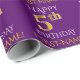Den här pappra designen innehåller ett meddelande som "LYCKLIG 5:e BIRTHDAY", där "5:e" visas som faux/imitation guld. Den har också ett eget namn och en bakgrund för färgaden lila. Det kan kanske användas när man slår in presenter för någons femte födelsedag. [~Z0000134]