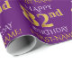 Den här pappra designen innehåller ett meddelande som "LYCKLIG 82:a BIRTHDAY", där "82:a" utseendet faux/imitation guld. Den har också en namn som kan anpassas och en bakgrund för lila färgad. Det kan kanske användas när man slår in presenter för någons åttio andra födelsedag. [~Z0000134]