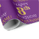Den här pappra designen innehåller ett meddelande som "LYCKLIG 8:e BIRTHDAY", där "8:e" har ett utseende som faux/imitation guld. Den har också en namn som kan anpassas och en bakgrund för lila färgad. Det kan kanske användas när man slår in presenter för någons åttonde födelsedag. [~Z0000134]