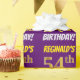 Den här pappra designen innehåller ett meddelande som "REGINALD'S 54:e BIRTHDAY!", där "54:e" har ett utseende som liknar guld och liknar färg och med namn och "BIRTHDAY" i ett roligt, fet stil. Namn kan anpassas och bakgrunden är färgadens lila. Att packa pappert som detta skulle kanske kunna användas när man fyller på födelsedagskalkyl som ges till någon i firande på deras femtiofjärde födelsedag. [~Z0000206]