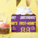 Den här pappra designen innehåller ett meddelande som "FIRST-NAMN's 88:e BIRTHDAY!", där "88:e" har ett utseende som liknar guld och liknar färg, och med namn och "BIRTHDAY" i ett roligt, fet stil. Namn kan anpassas och bakgrunden är färgadens lila. Att packa pappert som detta skulle kanske kunna användas när man fyller på födelsedagskalkyl som ges till någon i firande på deras åttio åttonde födelsedag. [~Z0000206]