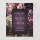 Elegant budget bröllop spara datum flygblad med ett mörkt lila blommigt tema. Den stämningsfulla färgpaletten är bra för ett höstbröllop. Använd mallen för att lägga till ett foto och generera en QR-kod eller ta bort båda i designredigeringsverktyget.