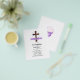 Inbjudan till flickas första nattvard med lila tema anpassningsbar till dina specifikationer. Kuvert ingår inte. För tjockare inbjudningar med kuvert och matchande produkter i samma tema, se samlingen nedan.