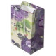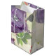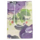 Lila blommor i en designad presentsäck med vattenfärg, få snart text kan vara personlig till kostym vilken tillfälle som helst. Text kan också tas bort.