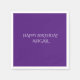 Lila födelsedagskalkservetter med eget namn. Matchande tallrikar och ballonger finns tillgängliga.