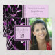 Anpassade födelsefestinbjudningar för 21-årsdag med elegant svart och lila virvlande mönster. Lägg till din bild och festdetaljer för en unik och stilren födelsefestinbjudan.