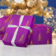Vår Lila Foil Stylized Julgran Wrapping Papper har ett stiliserat Julgran-motiv som är tryckt på en glansig lila folieliknande bakgrund.