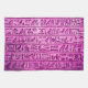 En uppsättning lila kökshanddukar med gamla hieroglyfer graverade på sten.