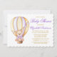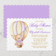 Nalle för vattenfärgsviolett Luftballong för Lila med Lila Bow Baby Shower-inbjudan. Guld och Lila Text.