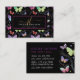 Namn Elegant Lila Bright Butterflies-Affärskortet, Dessa affärskort för blommigt av elegant har ditt namn och din namn eller titel i Flies colorful butterflies, jewelry butterflies och glowing night butterlies on the black textural bakgrund. Utforma med fjärilar, anpassa ditt namn med en Modern elegant Glam galaxy. Lägg till ditt namn och kontaktinformation
