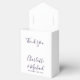 En elegant bröllop-förmånslåda med snyggtens lila namnteckning skript namn och speciellt datum angivet i modern typografi. Du kan anpassa dig med ditt eget tackmeddelande under locket. Ett perfekt sätt att tacka gästerna! Designad av Thisisnotme©