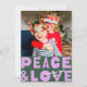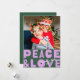 Detta moderna och festliga fotokort för helgdag har en djup grönt med hälsning "peace & kärlek" i lavender. På baksidan finns samma bakgrund i grönt färg, till vilken du kan lägga till ytterligare foto och/eller text genom att markera alternativet "Redigera med verktyg". Så roligt och festlighet! *DESIGN TIP* - Alla färg i den här designen är anpassade! Klicka bara på "anpassad design längre".