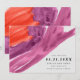 Elegantens vattenfärg sparar datumkorten med vackra stänk av vattenfärg i rik, fetstil och lila. Anpassa till bröllop-datum, namn, plats och information som bröllop webbplats eller inbjudningsinformation, allt i elegant och modernt typsnitt. Kortens baksida fortsätter med effekten Organiskt stänk.